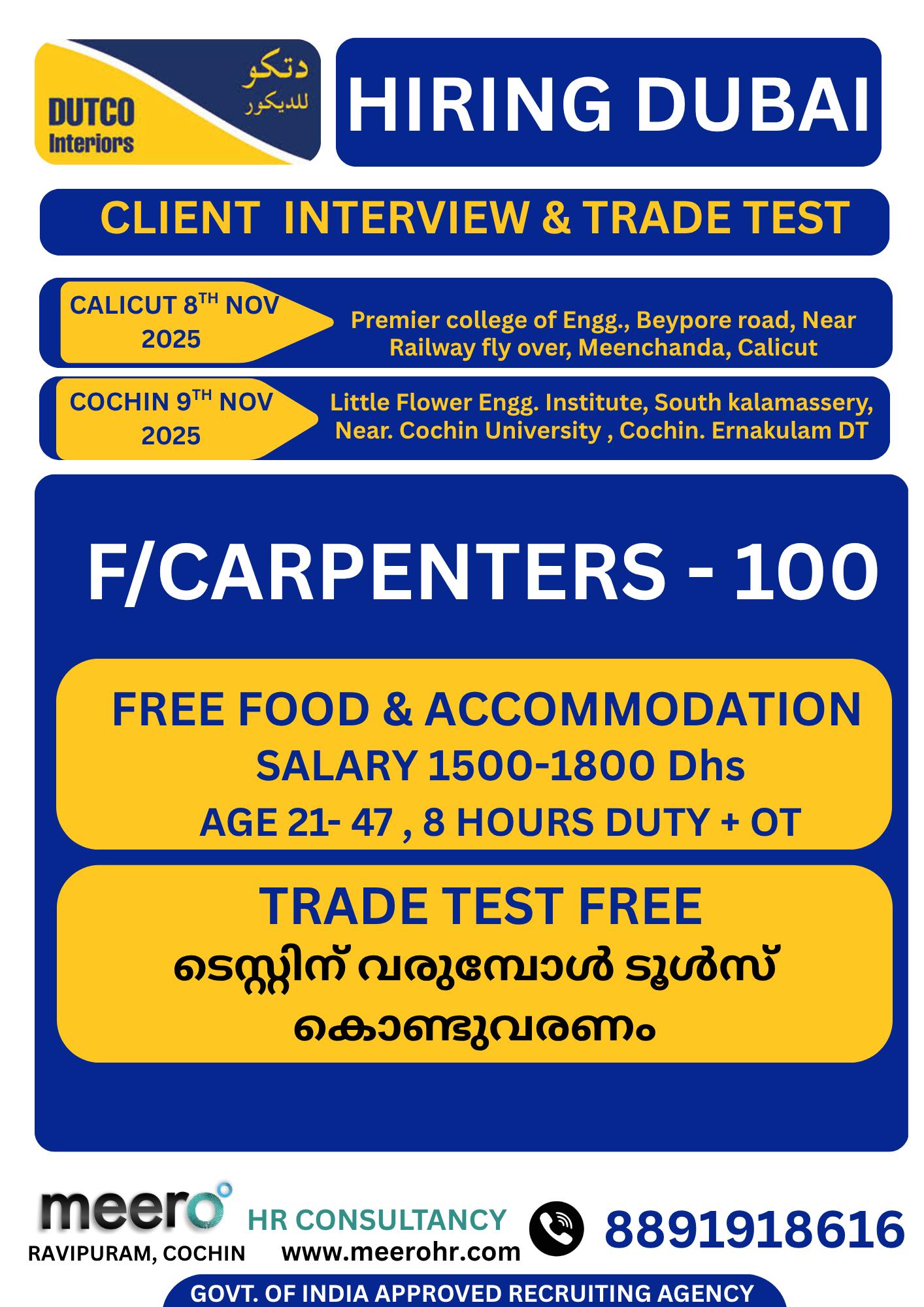 Client interview & Trade test on 8th Nov at Calicut & 9th Nov at Kochi