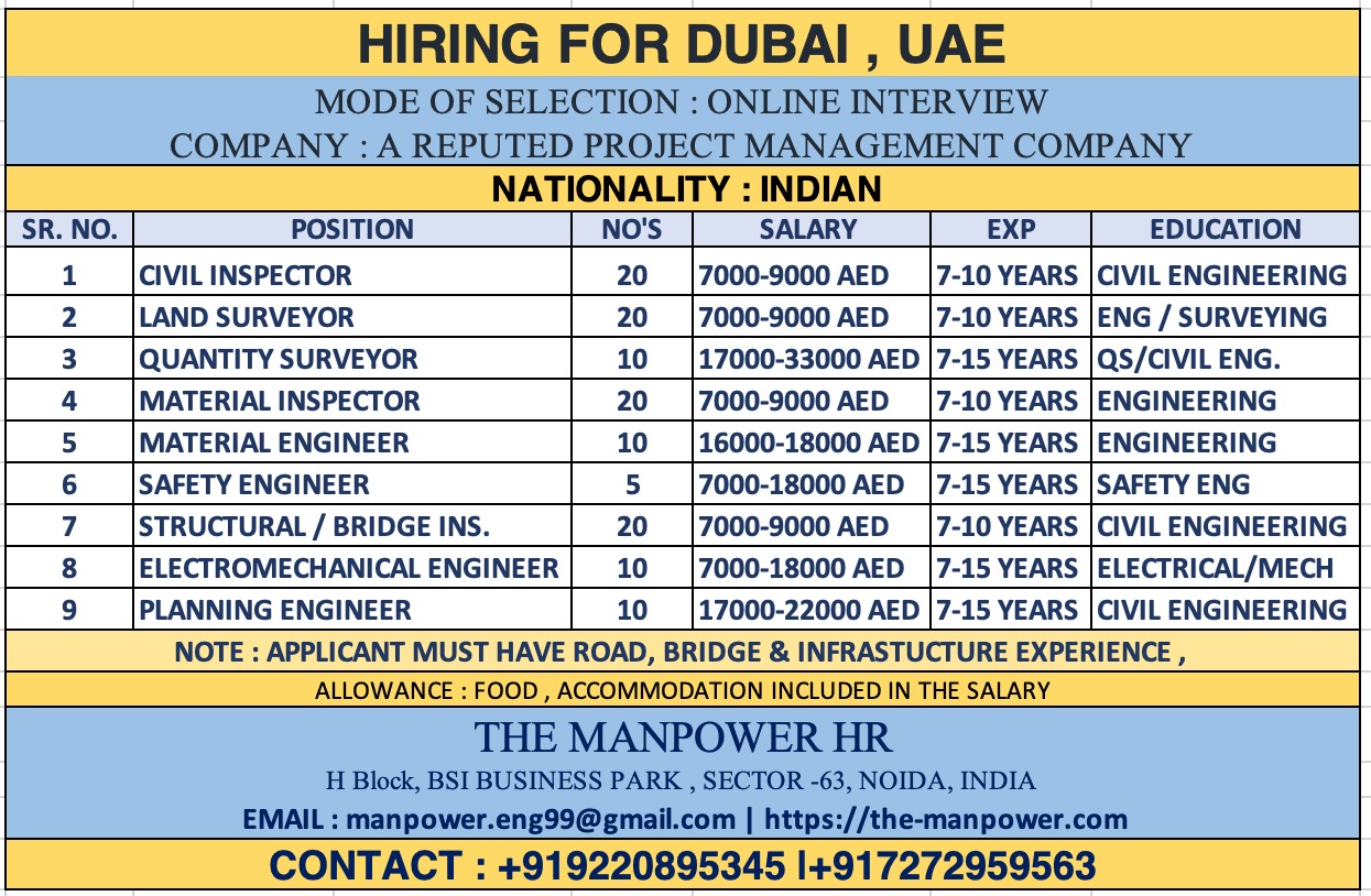Must have min 7 years experience in road, bridge & Infrastructure projects