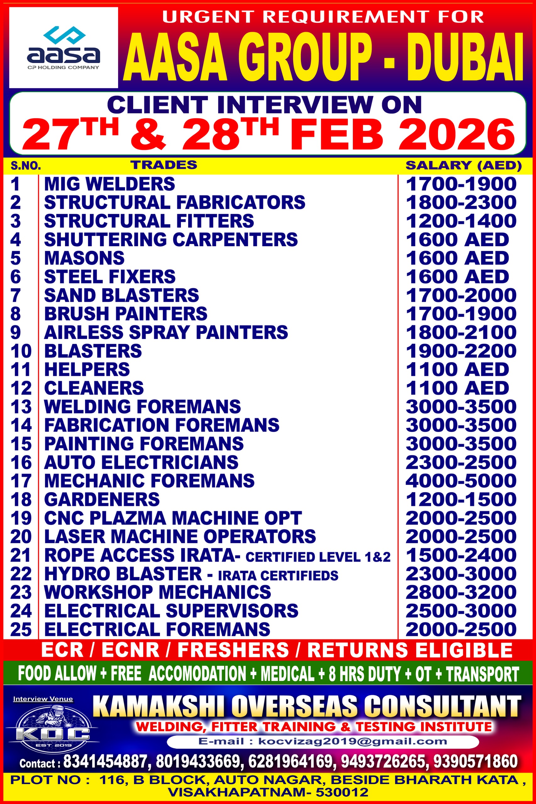 | Welding Foreman | 3500 AED | |