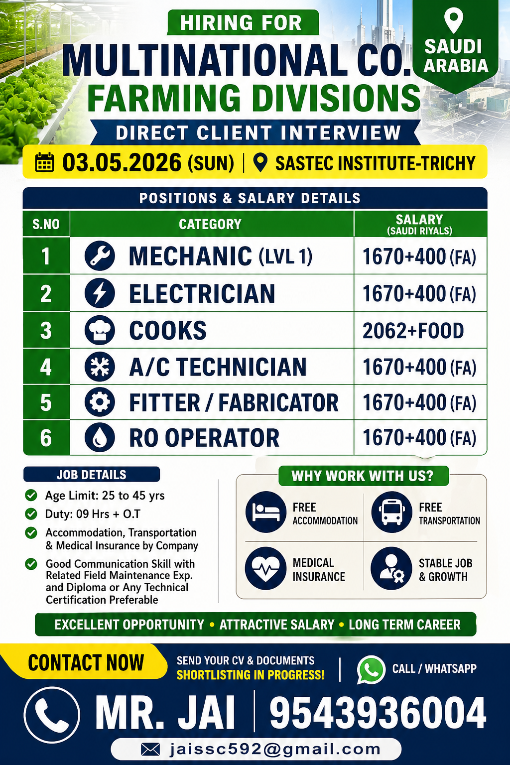Disclaimer:- GCCWALKINS have no involvement in any recruitment process, This website just sharing job vacancies & interviews from various sources. Applicants are advised to research the bonafides of the prospective employer independently. We do NOT endorse any requests for money payments and strictly advice against sharing personal or bank related information. If you suspect any fraud or malpractice, email us at gccwalkins@gmail.com