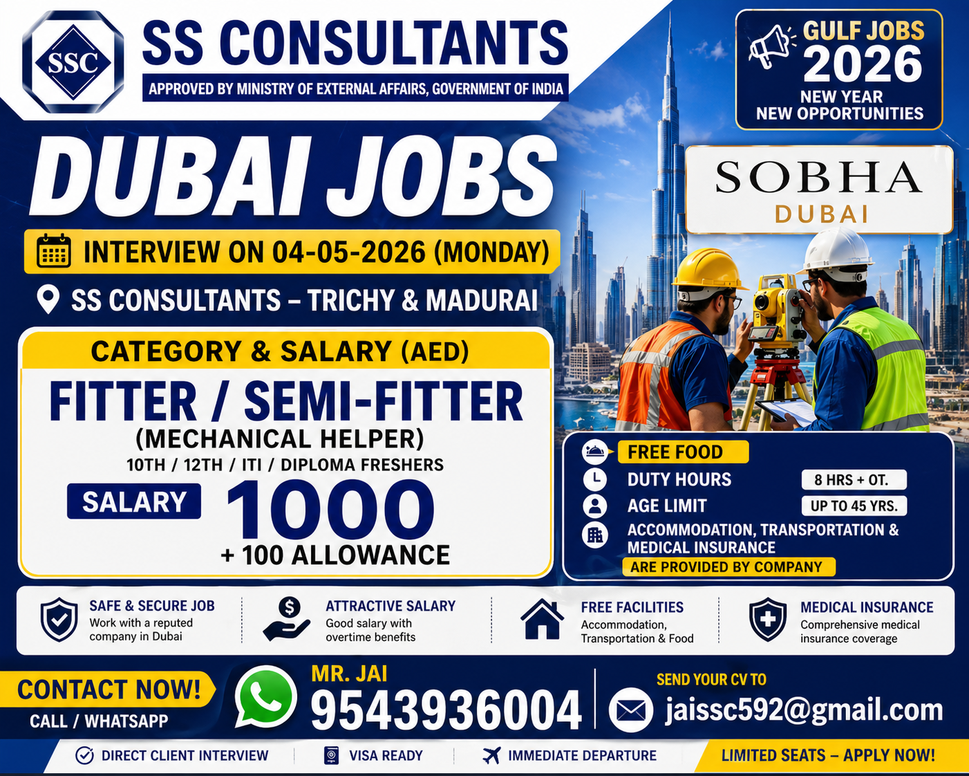 ITI Fitter fresher Jobs in Dubai - Sobha Company